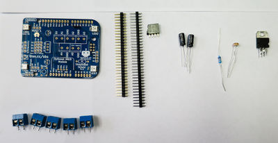 The SimpleBot shield has a small number of through-hole components that need to be soldered on: