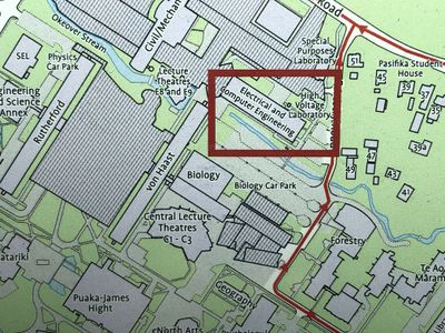 The OHMC is located in room 210 (second floor) of the Electrical and Computer Engineering building immediately north of the Centre Lecture Theatres (registration). Unfortunately, you can't head due north because of construction works. On of the volunteers may have left directions in chalk on the road / pavement. From registration head out the main door and walk due east along the road and follow it as it curves to the left. That will get you past the construction works. The entrance to the E&CE building is half-way along the south side.