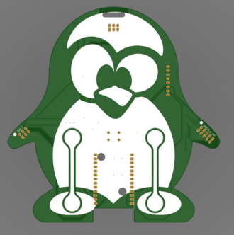 What does the hardware kit look like? It's a Swagbadge again, now in a more penguin shaped form factor. It has: